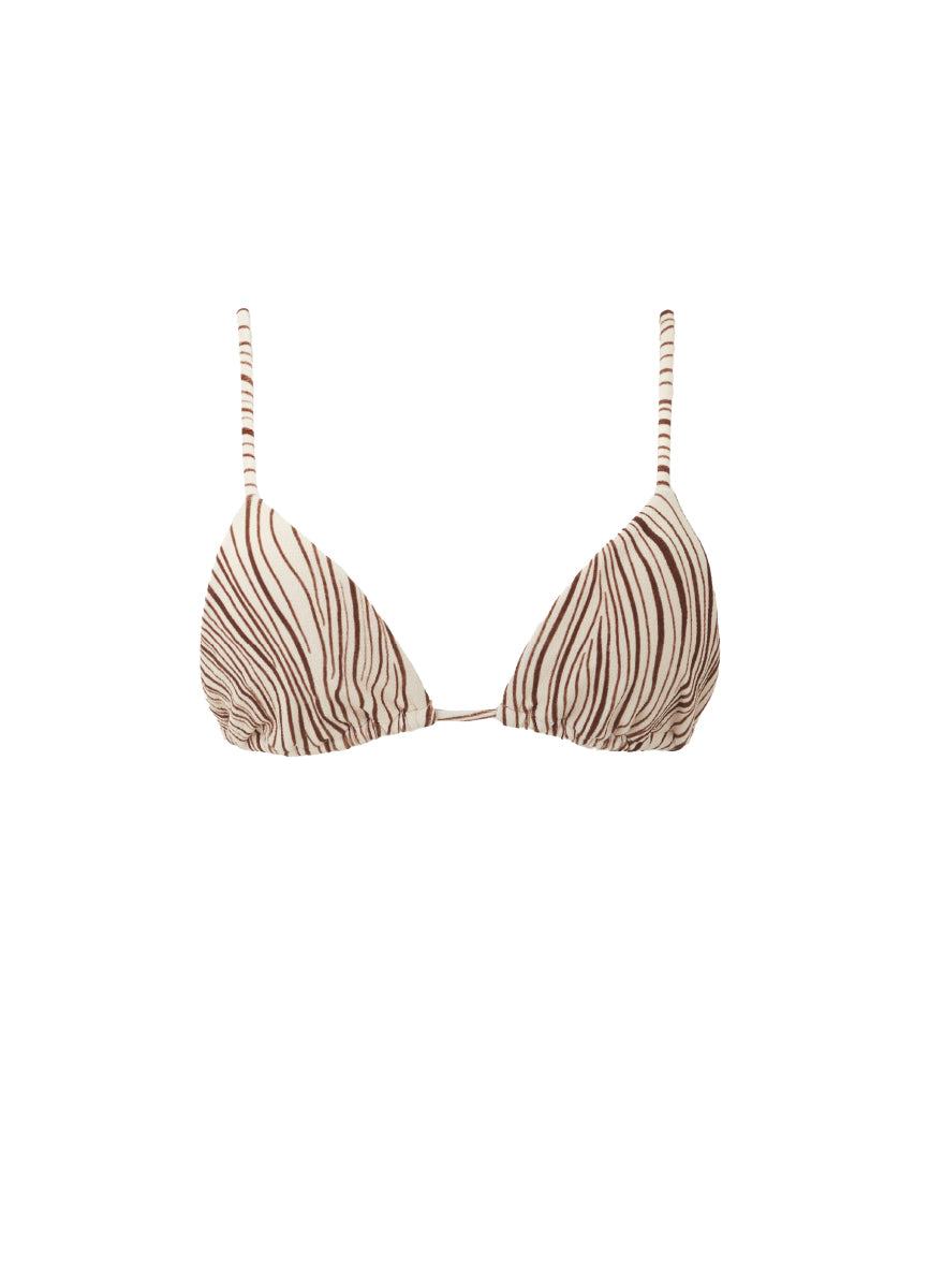 El Maira Top de Eternal Sands presenta una silueta triangular clásica, reinterpretada con un estampado de rayas contemporáneo inspirado en texturas naturales. Diseñado para ofrecer versatilidad y confort, incluye tirantes delgados ajustables y amarre en la espalda para un ajuste personalizado. Su tela suave y copas sin relleno proporcionan una sensación ligera, ideal para los días bajo el sol. Combínalo con el Charlotte Bottom para un conjunto sofisticado y relajado.