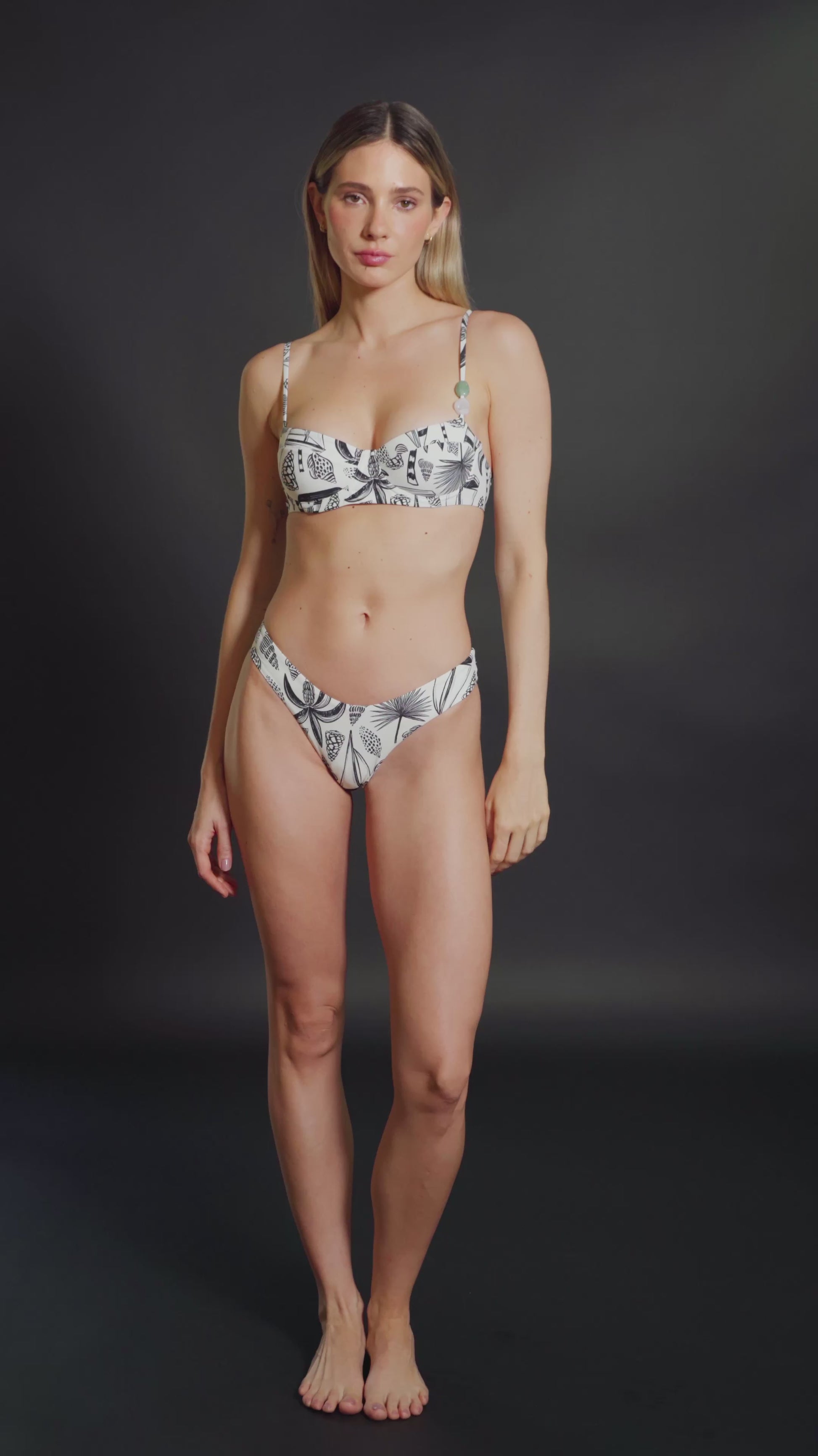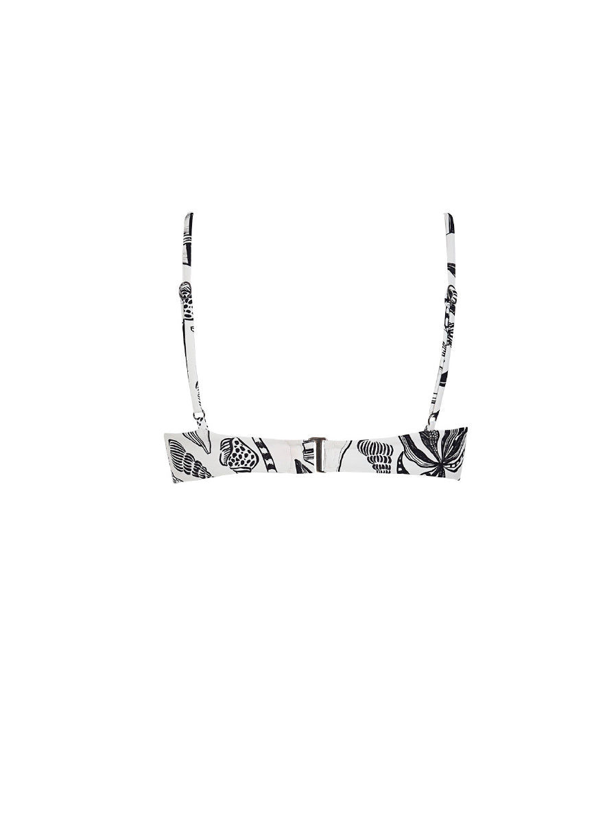 El Top Sunny tiene una silueta tipo balconette con copas estructuradas, arco y cargaderas ajustables que se adaptan con facilidad al cuerpo. Su escote recto enmarca el busto de forma natural y el estampado exclusivo La Isla le aporta contraste y carácter a un diseño limpio y sofisticado. Lleva broche dorado en la espalda para un acabado pulido. Perfecto para llevarlo del agua al resort sin esfuerzo.