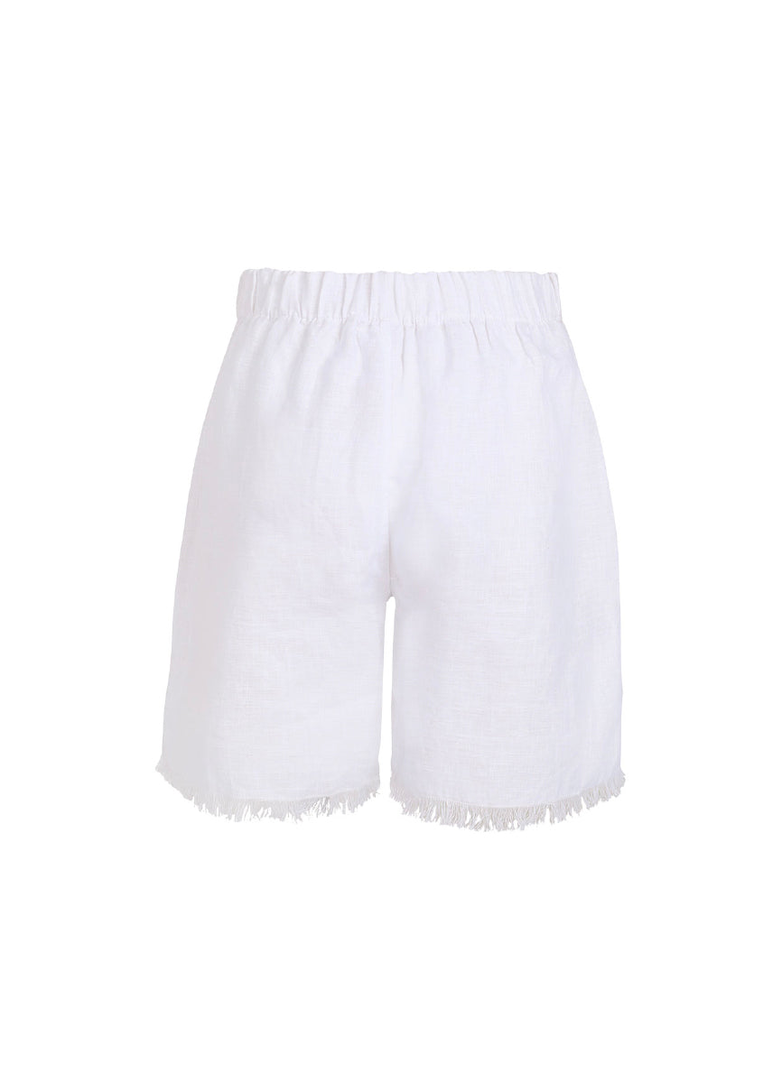 El Short Valencia tiene una silueta amplia con bolsillos visibles y un fit estructurado pero relajado. El acabado desflecado en el ruedo le aporta un toque artesanal y auténtico, mientras que su largo favorece la comodidad. Es una prenda versátil que puedes combinar con bikinis o tops de resort para pasar sin esfuerzo del mar a la ciudad.