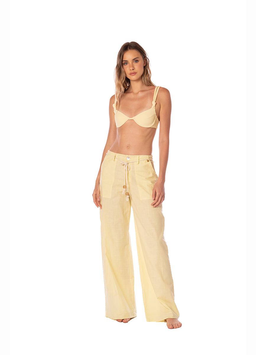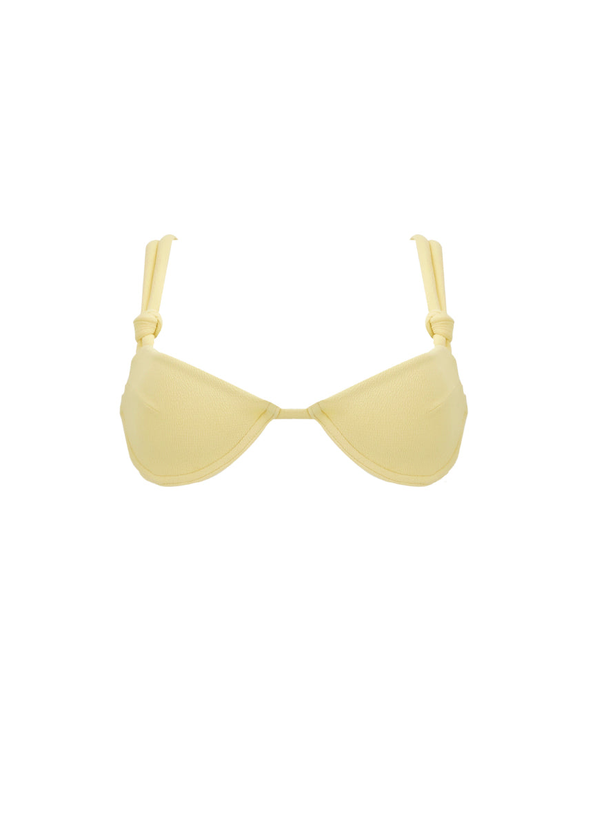 El Fer Top Essence en sun sólido combina soporte estructurado con elegancia minimalista. Este top con copa moldeada presenta textura sutil que añade dimensión al diseño, mientras que las tiras ajustables con detalles anudados en los hombros ofrecen un fit personalizado y un toque distintivo. El cierre posterior ajustable asegura comodidad durante todo el día, y las copas preformadas brindan soporte natural sin relleno. El tono sun luminoso aporta calidez solar a la colección Terra Di Sole.