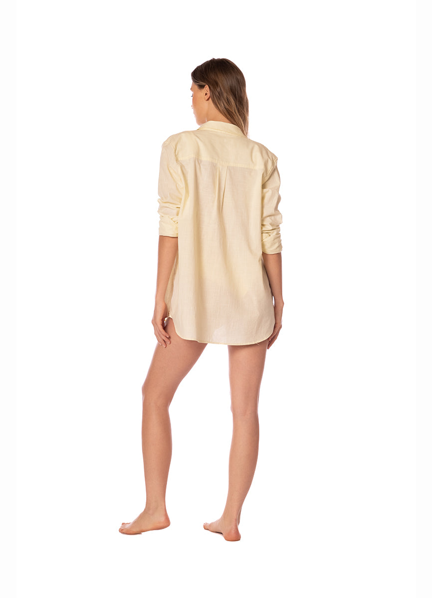 La Camisa Solid Sun Essence Arabella presenta un diseño versátil en un elegante tono crema que captura la esencia del verano. Confeccionada en tejido de lino suave, cuenta con una silueta relajada oversized que ofrece comodidad y estilo sin esfuerzo. Su cierre frontal con botones y cuello clásico la convierten en la pieza perfecta para usar como cover-up sobre tu bikini favorito o como camisa casual. Las mangas largas con puños se pueden arremangar fácilmente para un look más relajado. Su corte ligeramente asimétrico y longitud media la hacen ideal para combinar con shorts, bikinis o usar sola como vestido playero.